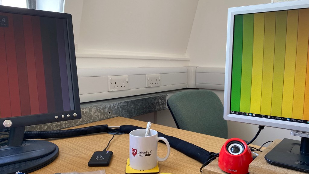 Now you have to understand that my works linux rig is somewhat a work in progress, in that its an old windows pc that I rescued from password purgatory, by nuking it and installing Ubuntu. No probs, Ill get an adaptor dongle, plug and pla… er no, it wasn’t HDMI ( no I didn’t check properly I hate crawling about under desks). Right order up a dvi dongle…plug and… you know whats coming, yep turns out its display port…OK then..